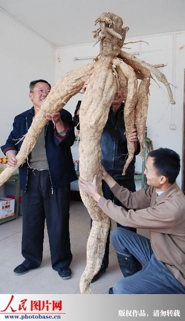 人民圖片網12月9日報道 2008年12月8日,廣西昭平縣附城村農民何立教在向鄰居展示酷似“人形”的巨型葛薯。12月6日,廣西昭平縣附城村農民何立教在自家位于山坡的菜園里,挖出一棵長2米、重121斤,形狀酷似“人形”的巨型葛薯。據了解,這棵葛薯種植已有5年多時間。