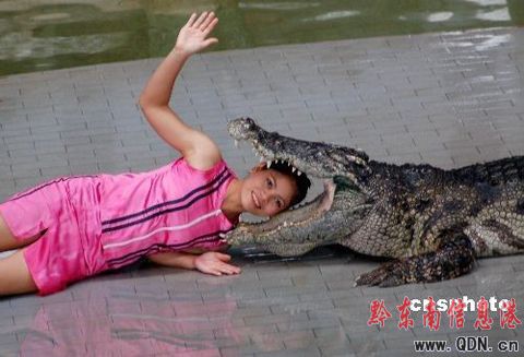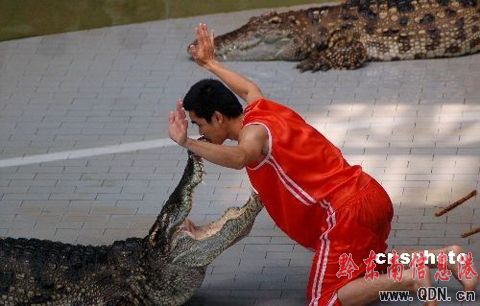 泰國驚險(xiǎn)鱷魚表演吸引游客(圖)