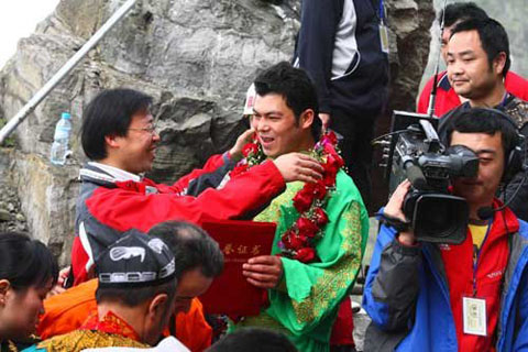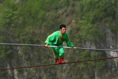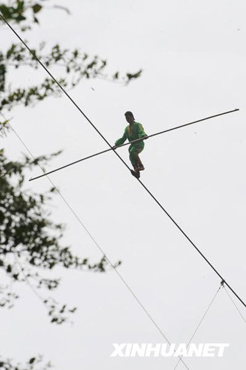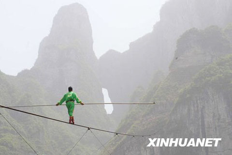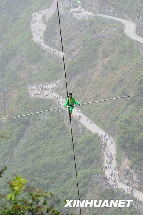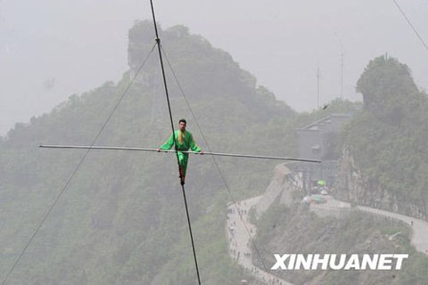 賽買提重走湖南天門山高空鋼絲獲成功(圖)