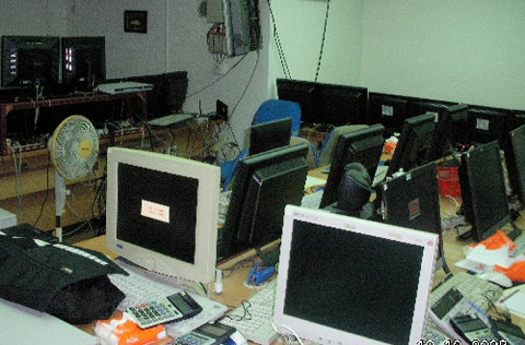 武漢,2009年6月12日 湖北破獲特大系列網(wǎng)絡(luò)賭博案 涉案賭資超過200多億元 這是一處賭博場所。 經(jīng)過一年多的偵查,湖北咸寧警方破獲了一起特大網(wǎng)絡(luò)系列賭博案,已查獲五個(gè)開設(shè)賭場的犯罪團(tuán)伙,依法判決27人,涉案賭資高達(dá)200多億元。