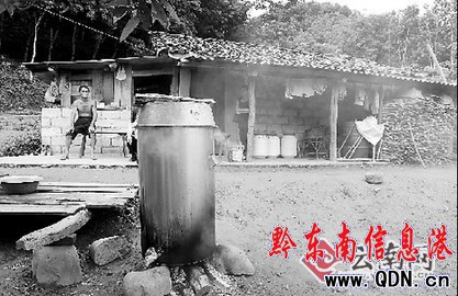 由于康萬年和高祖橋兩戶人家的家人都外出干活,記者一靠近房屋就受到正在屋前烤酒的高祖橋父親高某的熱情招呼。