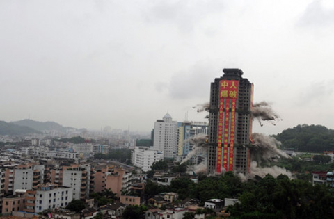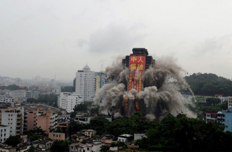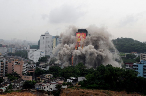 廣東中山爆破拆除亞洲最高爛尾樓(組圖)