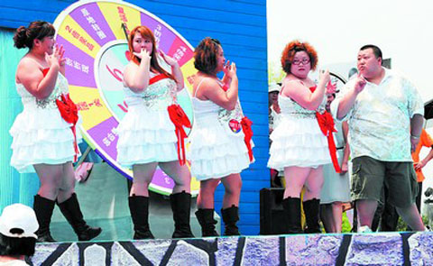 《長沙晚報》消息 有這樣一個特殊的藝術團,最胖的成員有450斤,最瘦的也有200斤!要加入這個藝術團也不容易,體重必須在90公斤以上。這個藝術團就是河南省鄭州市南關街邊一會所里的胖胖藝術團。昨日,受到廣泛關注的胖胖藝術團應邀來長沙參加一電視臺的活動,搞笑的舞姿,幽默風趣的語言,陽光自信的笑容,讓全場觀眾不停拍手叫好。
