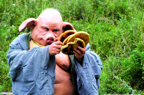 張紀中接受采訪時曾表示,他所打造的《西游記》將在造型上區別于以往所有版本。在昨日曝光的劇照中,豬八戒的造型比老版本的《西游記》更加可愛。不但臉上的笑紋清晰可見,還有白頭發、白眉毛和白胡子。為突出豬八戒的肥壯,此次臧金生還是裝了一個特大的假肚子,并在后腦勺和頸部之間做了一塊明顯的“贅肉”。與之前被偷拍的照片相比,此次曝光的豬八戒憨態可掬,十分可愛,并沒有網友所擔心的猙獰和兇狠。