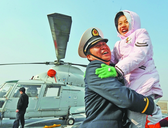 昨天上午,圓滿完成第三批赴亞丁灣護航任務的海軍東海艦隊“舟山”艦和“徐州”艦,順利返回舟山某軍港。當日,海軍官兵及部分護航官兵家屬,在碼頭翹首以盼,迎接載譽而歸的第三批護航編隊將士。