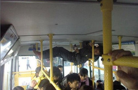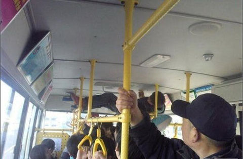 網友曝最強公交售票員在乘客頭頂售票(圖)