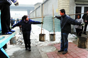 3月2日,濟南,5名經過考試被錄取的大學生淘糞工正式上崗。