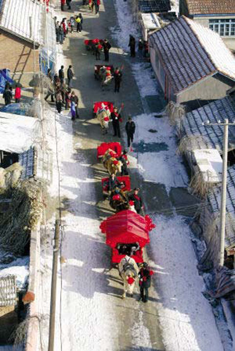 吉林小伙用10輛牛車接新娘 寓意十全十美(圖)