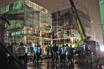 目擊者紛紛猜測,這次坍塌事故極有可能與昨日凌晨的特大暴雨有關,“這么大的雨,如果水泥支撐梁不扎實,或者灌注的水泥未干,很有可能導致坍塌”。