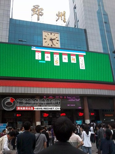 鄭州車站信息大屏幕直播工作人員玩撲克(圖)