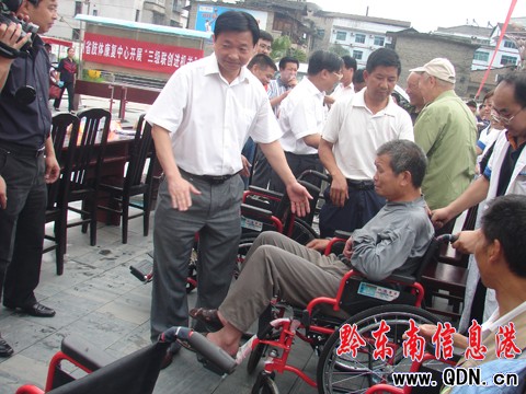 榕江縣縣長(zhǎng)肖克在現(xiàn)場(chǎng)看望殘疾員