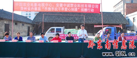 4月29日,中國(guó)農(nóng)業(yè)電影電視中心、安徽中誠(chéng)塑業(yè)科技有限公司來(lái)到丹寨縣開(kāi)展“手挽手抗干旱愛(ài)心地膜”捐贈(zèng)行動(dòng)