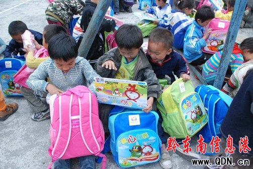 于是騰訊網(wǎng)友向方祥民族小學捐贈了價值1萬多元的愛心包裹,這些包裹是精美的新書包里還有橡皮泥、彩色顏料、筆、水杯、布娃娃以及各種發(fā)散思維的剪紙。這些豐富多彩的愛心物品既豐富了他們的生活,又解決了他們喝水的問題。瞧,他們幸福得滿臉燦爛。(侯星明)