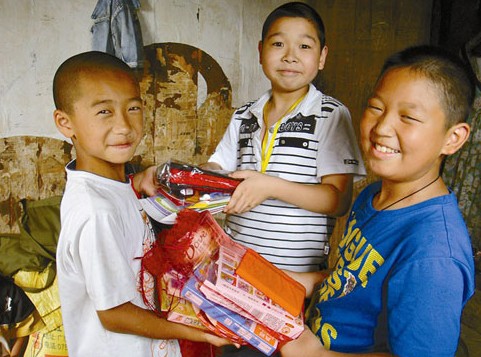 參加本次夏令營的孩子是來自我區各小學三至五年級的學生,年齡最大13歲,最小的才9歲。7月9日下午一下火車,一踏上貴州省黔東南州麻江縣的土地,小家伙們就興奮地向帶隊老師詢問結對學校、將入住的家庭的情況。帶隊老師說,貧困這個詞對于這些生活在城市的孩子們來說非常陌生。當孩子們走進麻江縣壩芒小學,看到用木頭搭的簡易桌椅和發白的黑板,用柴枝做的掃帚和簸箕時,非常吃驚,“原來貴州山區孩子的讀書環境這么艱苦!”