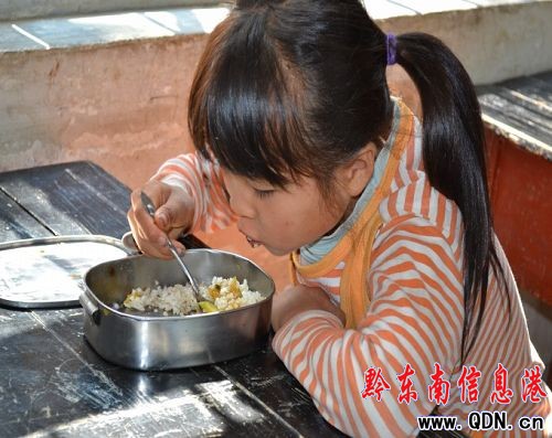 貧困攔不住的渴望:楊春碧,一位山區(qū)的兒童,正在教室里吃午飯