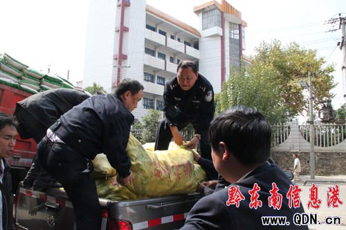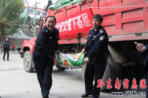 10月19日,黔東南州交警支隊到丹寨縣興仁鎮(zhèn)開展“千名干部聯(lián)千村”活動,州交警支隊政委劉貴榮、副支隊長劉黔東、黨總支副書記楊之黔率支隊政治處、宣傳科和駐村聯(lián)系民警對興仁鎮(zhèn)烏壽、中營、擺泥、甲勞、燒茶、新寨、白頭、城望、甲腳、臺辰十個行政村開展秋冬種幫扶,此次幫扶共送去復合肥10噸、洋芋種子2噸、小麥種子500公斤、大蒜種子500公斤、現(xiàn)金9000元。 (唐光新 楊武華/攝)