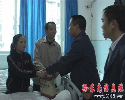 10月25日,臺江團縣委楊拯書記、掛職副書記龍金一行到黔東南州醫(yī)院看望慰問病重的農(nóng)民工子女龔勝梅同學(xué),把18000元愛心款交給了龔勝梅的父母,幫助他們緩解燃眉之急。在州醫(yī)院病房內(nèi),龔勝梅的父母接過愛心款,感動得淚流滿面。
