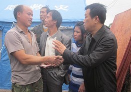 在大坪自然村寨,彭浩局長向大坪村負責人詳細了解了火災情況,實地察看災情,走訪受災群眾,深入臨時搭建的帳篷中問寒問暖,了解當前災民生活情況,并代表州氣象局全體干部職工為每個受災戶分別送上800元慰問金,并鼓勵災民走出受災陰影,迅速投入到災后恢復重建之中。同時,也希望鄉黨委、鄉政府妥善安置受災群眾,帶領和幫助災民度過難關,重建家園。