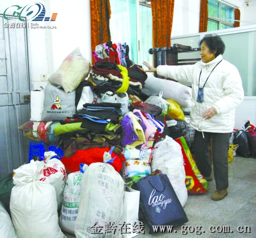 “太艱苦了!在聽了陳校長的描述后,我們很驚訝也很心痛,很想幫助這些孩子。我們幾個退休老師商量后決定向社會募捐舊衣物,讓大家獻出自己的愛心,力所能及地幫幫黎平縣的孩子們!”黃老師說。1月4日,她們在師大附中校內貼出了募捐告示,短短幾天,退休活動室里就堆滿了大家捐來的幾十袋衣服。“這些衣物大多數是退休教師捐的,大家都很熱情,告示貼出后每天往活動室送衣服的老師絡繹不絕,還有80多歲的肖老師專程從烏當坐車送衣服過來。”
