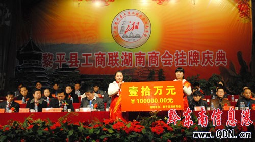 1月10日,黎平縣湖南商會開展“湘商光彩事業”活動,在黎平縣工商聯湖南商會掛牌慶典中,現場捐贈10萬元扶貧濟困金。