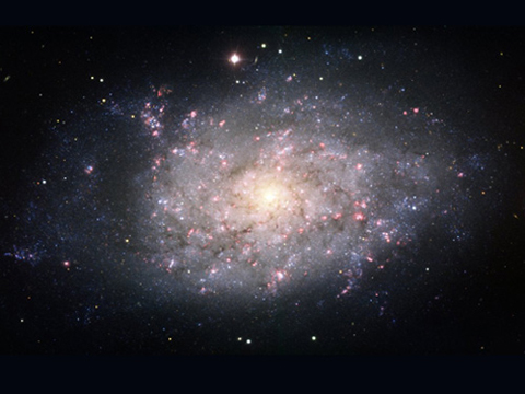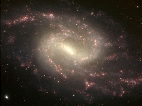星系的手臂上布滿了紅色斑點,這種富含氫氣的區域是恒星最易形成的環境,這類似于銀河系內獵戶星座,這張照片是由雙子北方望遠鏡拍攝的。據悉,業余望遠鏡也可以觀測到NGC 3359星系。