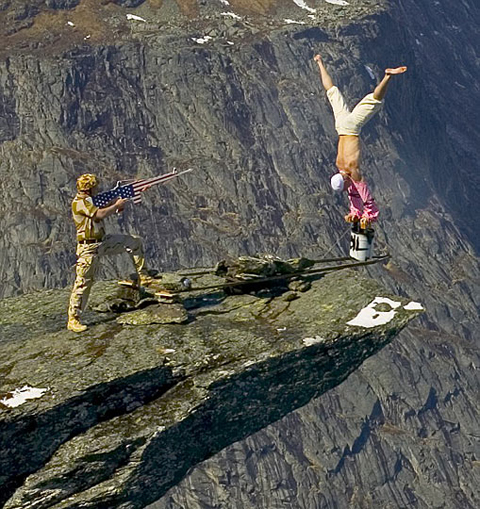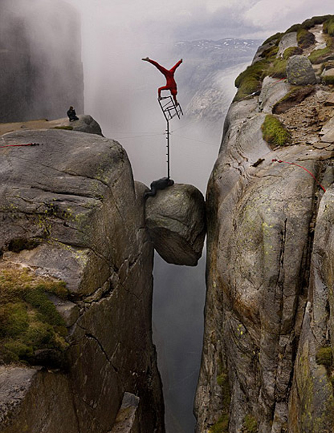 挪威藝術家300米懸崖邊表演平衡絕技(圖)