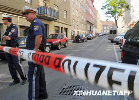 5月24日,奧地利警察在首都維也納發生槍擊事件的錫克寺附近執勤。