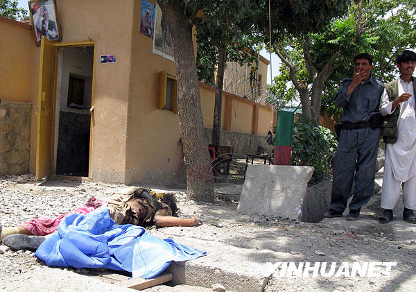 7月21日,阿富汗警察在帕克蒂亞省加德茲的自殺式炸彈襲擊現場警戒。當日,阿富汗兩座城市賈拉拉巴德和加德茲發生自殺式炸彈襲擊,導致多人死亡。塔利班武裝宣稱對這些襲擊事件負責。新華社發