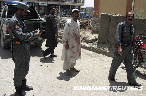 7月21日,阿富汗警察在加德茲的自殺式炸彈襲擊現場警戒。當日,阿富汗兩座城市賈拉拉巴德和加德茲發生自殺式炸彈襲擊,導致多人死亡。塔利班武裝宣稱對這些襲擊事件負責。新華社/路透