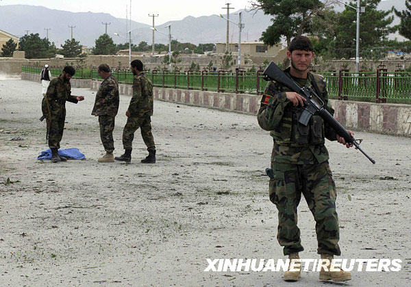 7月21日,阿富汗軍人在加德茲的自殺式炸彈襲擊現場警戒。當日,阿富汗兩座城市賈拉拉巴德和加德茲發生自殺式炸彈襲擊,導致多人死亡。塔利班武裝宣稱對這些襲擊事件負責。新華社/路透
