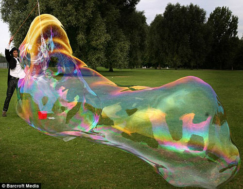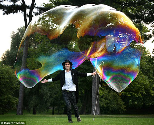 英國牛人吹出世界最大肥皂泡 創新紀錄(圖)