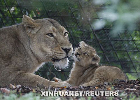 新華網(wǎng)消息 8月13日,在英國倫敦動物園,10歲的雌性亞洲獅阿比正和它兩個10周大的幼崽一起休息。