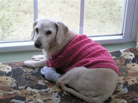 夏妮是六個星期大的時候,在收容中心被主人認養,從一只棄犬變成好命狗,這些年,它因為白內障,必須戴護目鏡,主人幫它量身訂做了一副眼鏡,老狗怕冷,主人還幫它織毛衣。日前夏妮在住處壽終正寢。