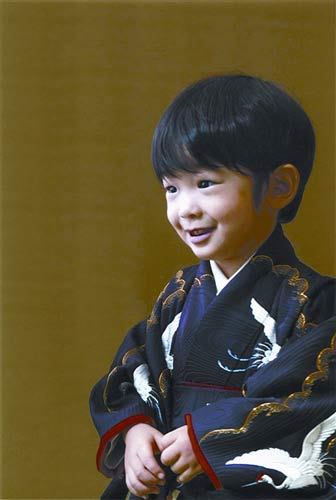 據(jù)中國日報消息 據(jù)日本媒體報道,目前日本皇室唯一的皇孫——悠仁9月6日迎來3周歲生日。當天,他身穿天皇夫婦為祝賀其生日而贈送的和服,在母親紀子妃的陪伴下前往皇宮覲見天皇夫婦。