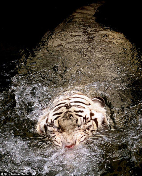 白虎一般皮膚呈白色,上面有黑色條紋,長(zhǎng)著藍(lán)色的眼睛和粉色的鼻子。皮爾森說(shuō),來(lái)到動(dòng)物園時(shí),剛好趕在老虎們“喝下午茶”的時(shí)間。她說(shuō):“它們坐在巖石上等著管理員扔下第一口食物,然后突然躍入水面。它們之間瘋狂爭(zhēng)搶,直到吃飽。新加坡是世界上白虎最多的國(guó)家。”