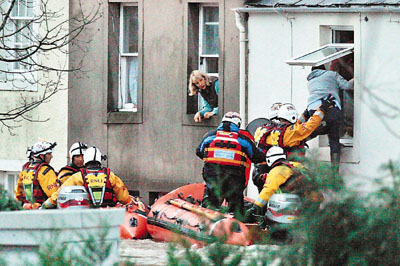 千年一遇洪水襲英倫 受困災(zāi)民爬上屋頂躲避(圖)