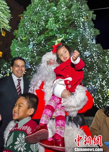 美國華裔女童主持圣誕亮燈儀式(圖)
