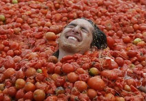 番茄浴 美國佛羅里達州最近十分盛行番茄浴。番茄富含維生素、磷、纖維素等營養物質,因而當地居民認為番茄具有細嫩、紅潤肌膚的功效,他們常常定期浸泡番茄浴,其方法是將番茄汁加入少量酒精、硼酸攪拌均勻后倒入水溫適宜的浴池中即可。番茄浴的推薦浸泡時間為25分鐘。