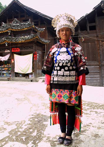 新橋距離雷山縣城13公里,從雷山縣城出發只需15分鐘車程。進到新橋大家都會眼前一亮,新橋苗族女人的超短裙,實際上是一種僅長5-7英寸的百褶裙。