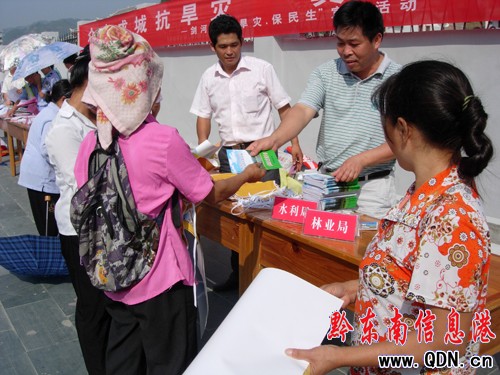 劍河縣林業局針對近月持續干旱天氣,森林防火工作十分嚴峻,為提高廣大人民群眾的森林防火意識,9月6日,該局將森林防火宣傳工作融入該縣2011年“眾志成城抗旱災,真抓實干保民生”宣傳活動中。通過懸掛橫幅、標語、制作展版、發放宣傳手冊、現場講解等多種形式,提升人民群眾對森林防火工作的關注程度。圖為林政工作人員向群眾發放森林防火宣傳手冊。 (石慶偉)