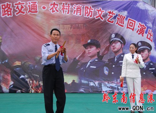 李岱桓同志參加三下鄉文藝演出表演快板節目《警鐘長鳴為大家》場景