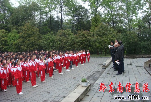 本港訊 (劉俊明 楊梅英)清明節期間,貴州省錦屏縣關工委以“我們的節日•清明”為主題,在松柏蒼翠,莊嚴肅穆的龍華二十四烈士之一的龍大道烈士陵園,組織該縣城關地區的中小學校3000多名師生開展理想信念革命傳統教育活動,以革命先烈的奉獻精神教育下一代,牢記先烈的遺志,樹立崇高的革命理想,熱愛黨、熱愛祖國、熱愛社會主義。