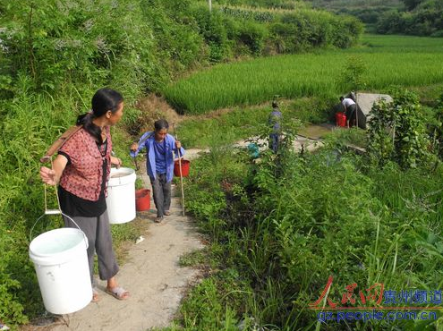 據介紹,旱災在銅鼓鎮12個村中都有不同程度的表現,重災區分布在岔路村、銅鼓村后山和蔡家坪、嫩寨村的新安和胡爾司、銅坡村寨王等缺水源的村寨。銅鼓村共計589戶2570人,屬鎮政府駐地,全靠水沖水庫供水,由于受到長時間的干旱,人飲用水已十分緊缺,該鎮的后山和蔡家坪共計150余戶人家600多人,全都要到500米外的地方排隊挑水飲用。
