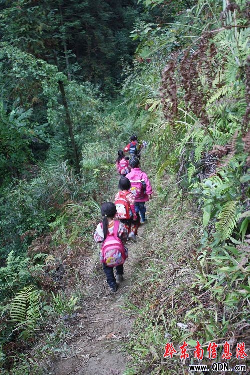 9月21日,貴州省黔東南苗族侗族自治州錦屏縣啟蒙鎮(zhèn)偏遠貧困華洞村燃坭塘寨11名幼小孩子上求學歷程一幕。自從合并校后這個寨的孩子要從離家5里路穿越深山老林高巖石到達村教學點上學,每天一口涼飯和一個包飯甚至1元的零食成為了他們的“主糧”,蛇、雨、雪、風等從不打消那一張認認真真的求學面孔,簡陋教學條件、樸實教學老師成為了他們渴求知識的向往。(姜巨標)