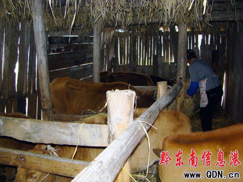 “我每年純收入在15萬元左右,既得照顧老人小孩,又不荒蕪田土,一舉多得”他這樣告訴筆者。經了解,他于2009年春季開始做起了養殖、運輸、銷售一條龍的經營方式,開著自購的小貨車穿梭于天柱、錦屏、黎平等縣鄉鎮的牛羊市場,由于買賣靈活,他的資金如滾雪球般逐漸壯大,不到兩年的時間純賺30多萬元�!八麖氖袌錾腺I來的牛羊就交給我照看喂養,等把小的喂大,大的喂肥后再拉到市場上,賣出個好價錢”他妻子說,是�。〖彝サ慕洕l展離不開有一個賢內助以及團結友愛的夫妻關系,在他倆的身上折射出一個當代新型農民發家致富的“代言人”,也是新農村建設的一個縮影。圖為該縣鐘靈鄉高寨村村民歐永貴和他的愛人吳水梅在查看自家牛羊的生長發育情況。(李斌)
