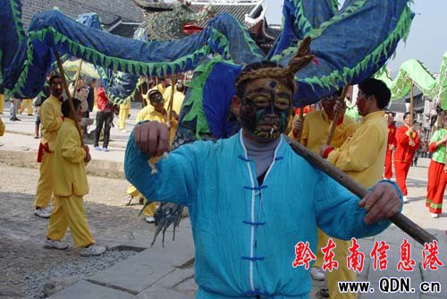 錦屏縣隆里古城膩粑龍狂歡迎龍年(圖)