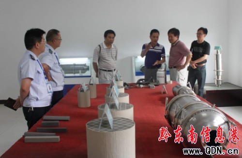 州國稅局鐘方軍副局長一行在開發(fā)區(qū)局國稅局龍堅局長的陪同下,到開發(fā)區(qū)黃帝車輛凈化器有限公司了解該企業(yè)的生產(chǎn)經(jīng)營情況,圖為該公司總經(jīng)理介紹該產(chǎn)品的生產(chǎn)工序及職能、作用。