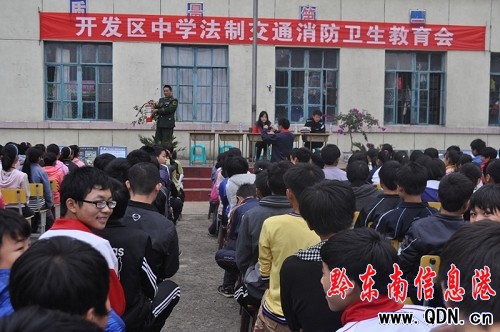 為全面增強中小學校師生抵御火災和逃生自救能力,切實加強學校消防安全知識教育,提高廣大師生的消防安全意識和逃生自救能力,10月24日,凱里開發區消防大隊聯合公安、交通、衛生等部門聯合開展“安全知識”進校園活動,對開發區初級中學200余名師生進行了安全知識大培訓。