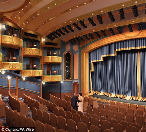 造船工人正在新游輪的劇院中繼續工作。盡管當前的經濟形勢并不樂觀,但丘納德公司認為,人們對游輪的需求依然強勁,特別是老年人。晚上,新游輪上通常會舉行各種舞會,還會播放二十世紀三四十年代的老電影。
