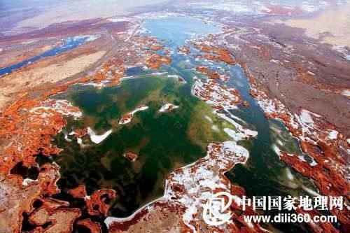 塔里木盆地濕地中的鹽堿小島,和這個季節的紅柳一起構成色彩絢爛的大地幕布,就像是雪與火的共舞,有生命和無生命,一起構成了令人感嘆的一幕。在我國,東北、西北、華北的干旱、半干旱地區,降水量小,蒸發量大,溶解在水中的鹽分容易在土壤表層積聚。此外,水溶性鹽隨水從高處向低處移動,也容易在盆地這樣的低洼地帶積聚。這些自然形成的鹽堿地,往往在人跡罕至的地方,是不容易見到的奇妙景色。